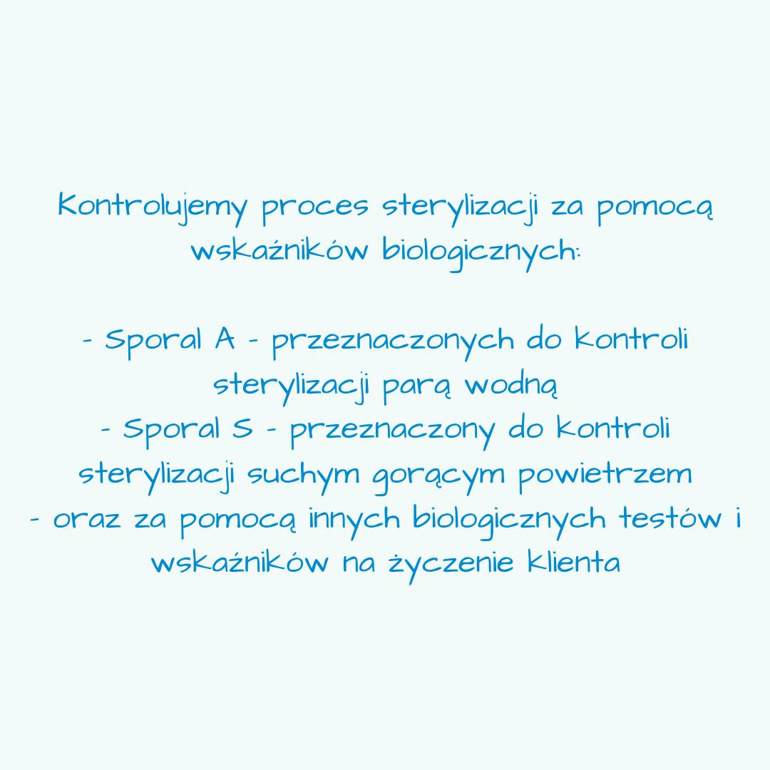 - oraz za pomocą innych biologicznych testów iwskaźników na życzenie klienta