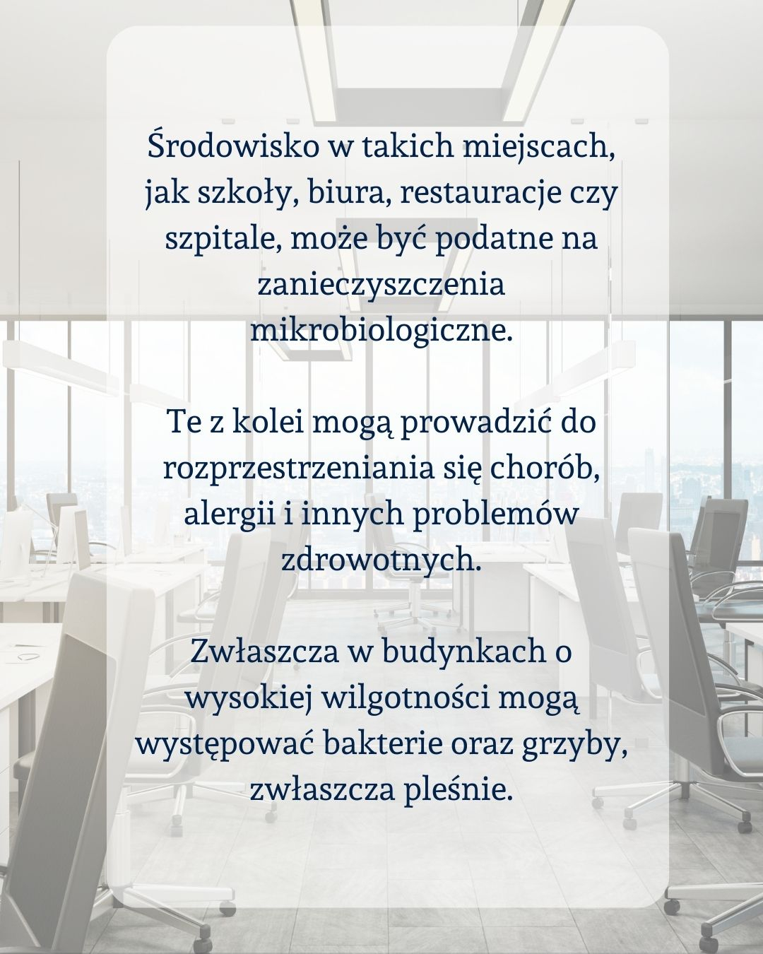 Środowisko w takich miejscach, jak szkoły, biura, restauracje czy szpitale, może być podatne na zanieczyszczenia mikrobiologiczne.